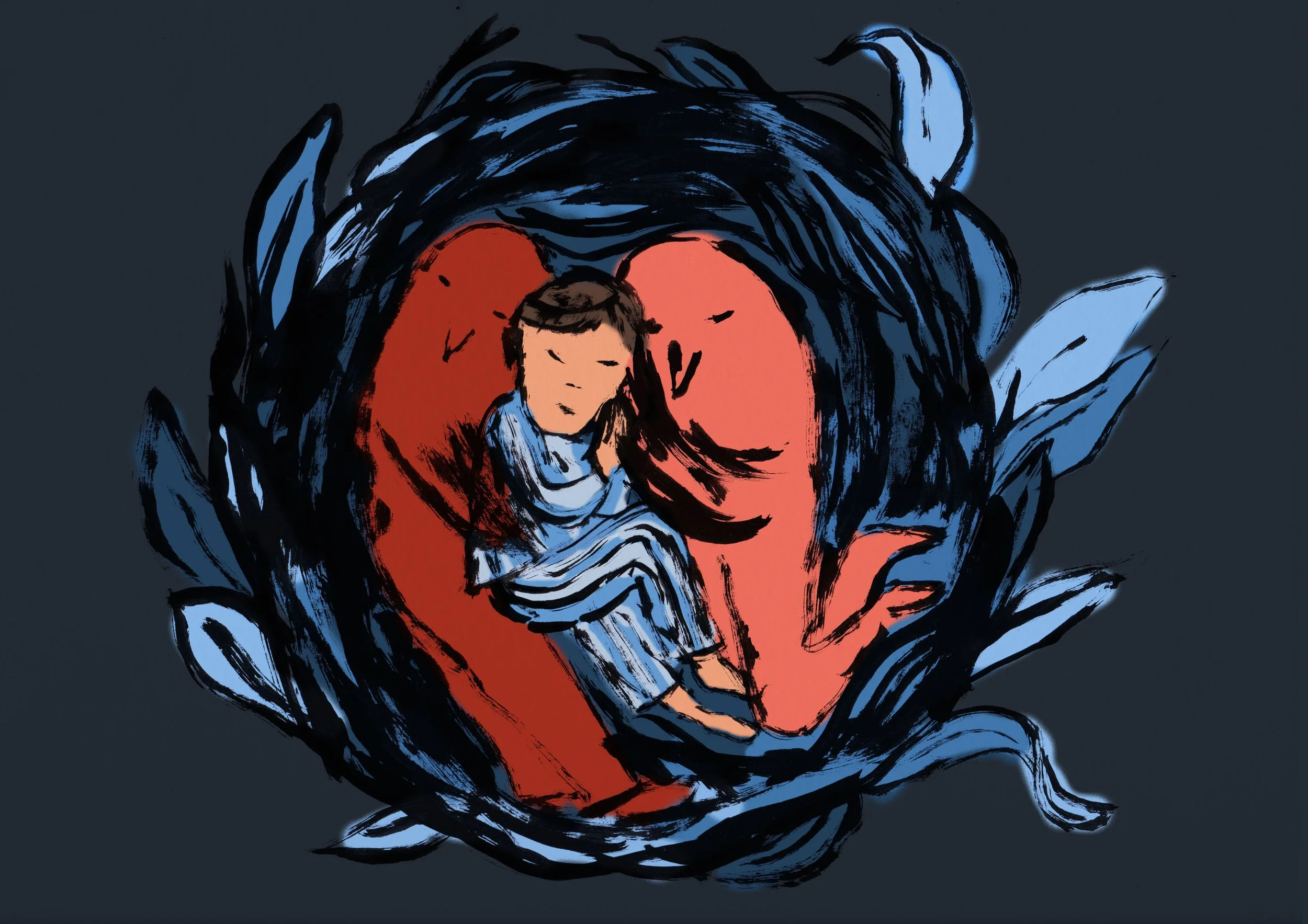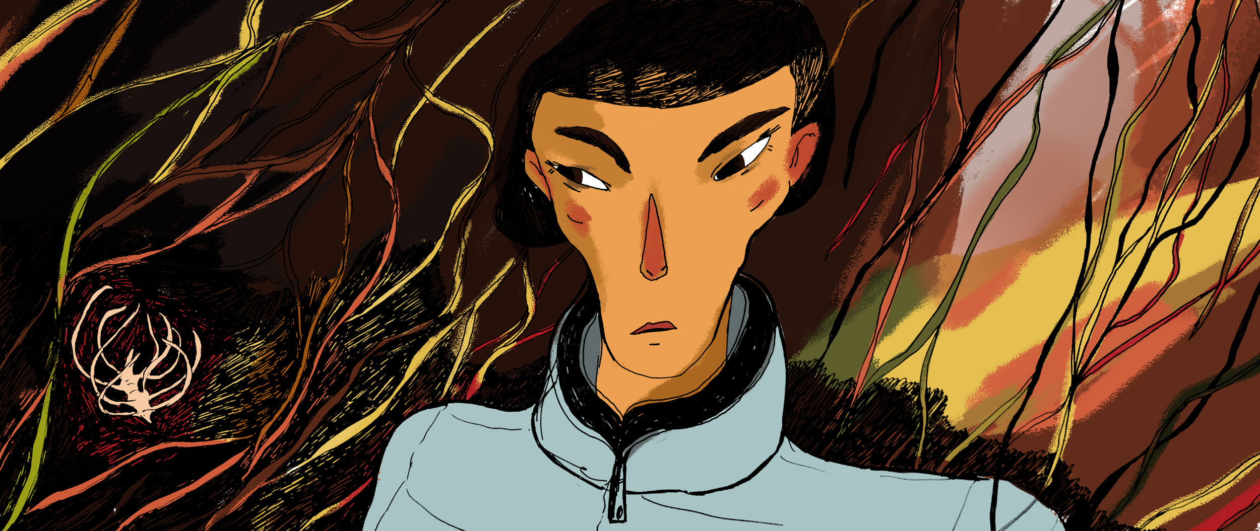 Ink on paper, digital coloring,